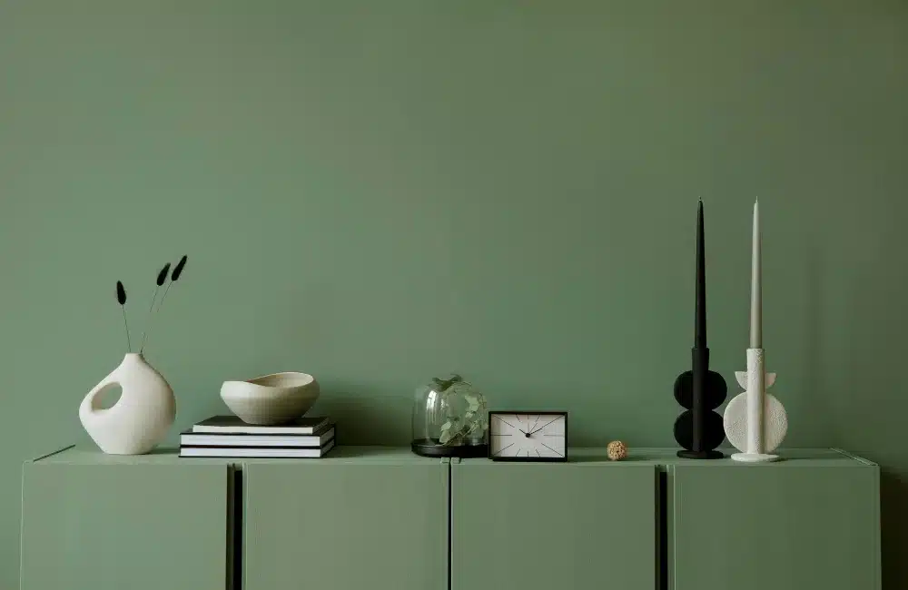 Sage green promotes relaxation as it is gentle and refreshing. This works perfectly with the boldness of black doors.